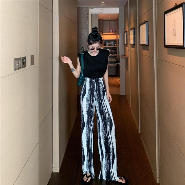 レトロハイウエストストレートパンツ ボトムス パンツ ストレートパンツ ロング ロング丈 ハイウエスト ポリエステル 大人可愛い 大人 おしゃれ お洒落 レトロ とろみ感 柄 春 夏 レディース デート お出かけ 女子会 休日 普段使い 韓国 韓国系 オルチャン フリーサイズ 白 ホワイト 黒 ブラッ 3830