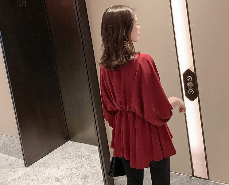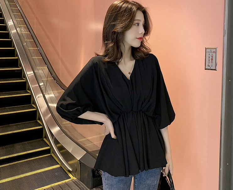 レディースチュニック Vネック 七分袖 無地 ウエストマーク フリル ギャザー プルオーバー トップス 春 夏 大人可愛い きれいめ おしゃれ お洒落 大人女子 ルーズ ゆる ゆったり ガーリー 通学 学生 大学生 キャンパスコーデ お出かけ 休日 女子会 デート おうちコーデ おうち時間 色違い 重ね着 着回し カラー ホワイト ワインレッド ブラック サイズ展開 S M L XL 2578