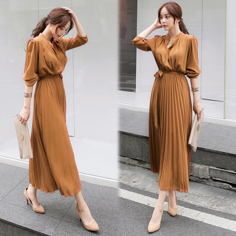 シフォンプリーツワンピース ワンピース フレアワンピース 膝下 ロング ロング丈 袖あり 長袖 スタンドカラー フレア プリーツ チュール ウエストマーク かわいい 大人可愛い きれいめ シンプル 大人 おしゃれ お洒落 大人可愛い 大人女子 こなれ感 ラブリー キュート ガーリー とろみ感 無地 春 夏 秋 10代 20代 30代 40代 レディース オフィス OL 通勤 学生 通学 デート お出かけ 公園デビュー 女子会 休日 レストラン 普段使い 韓国 韓国系 オルチャン ファ 4417