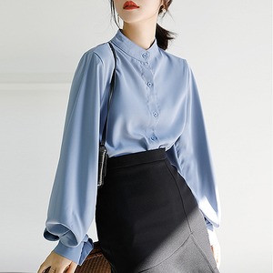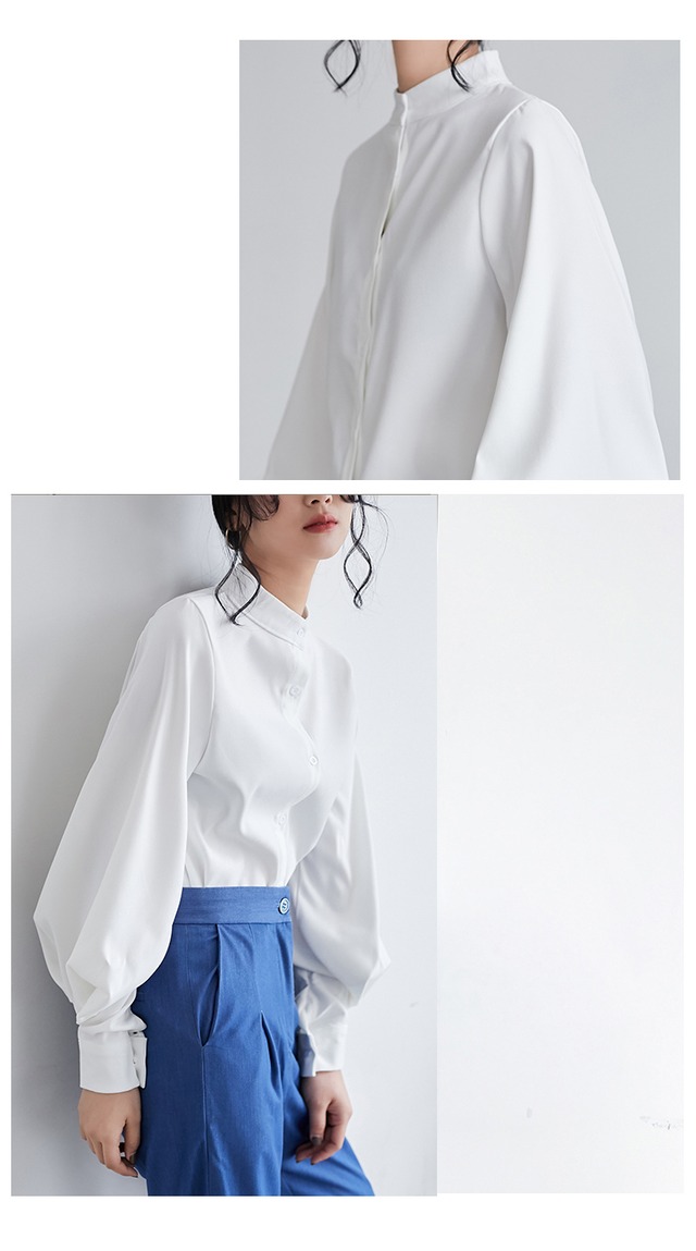 スタンドカラーシャツ トップス シャツ ブラウス 袖あり 長袖 ボリューム袖 スタンドカラー ハイネック 前開き かわいい 大人可愛い きれいめ シンプル 大人 おしゃれ お洒落 大人可愛い 大人女子 こなれ感 ガーリー とろみ感 抜け感 無地 春 夏 秋 10代 20代 30代 レディース オフィス ビジネス OL 通勤 学生 通学 デート お出かけ 女子会 休日 着回し 普段使い 重ね着 韓国 韓国系 オルチャン ファッション サイズ S M L XL 白 ホワイト 黒 4422
