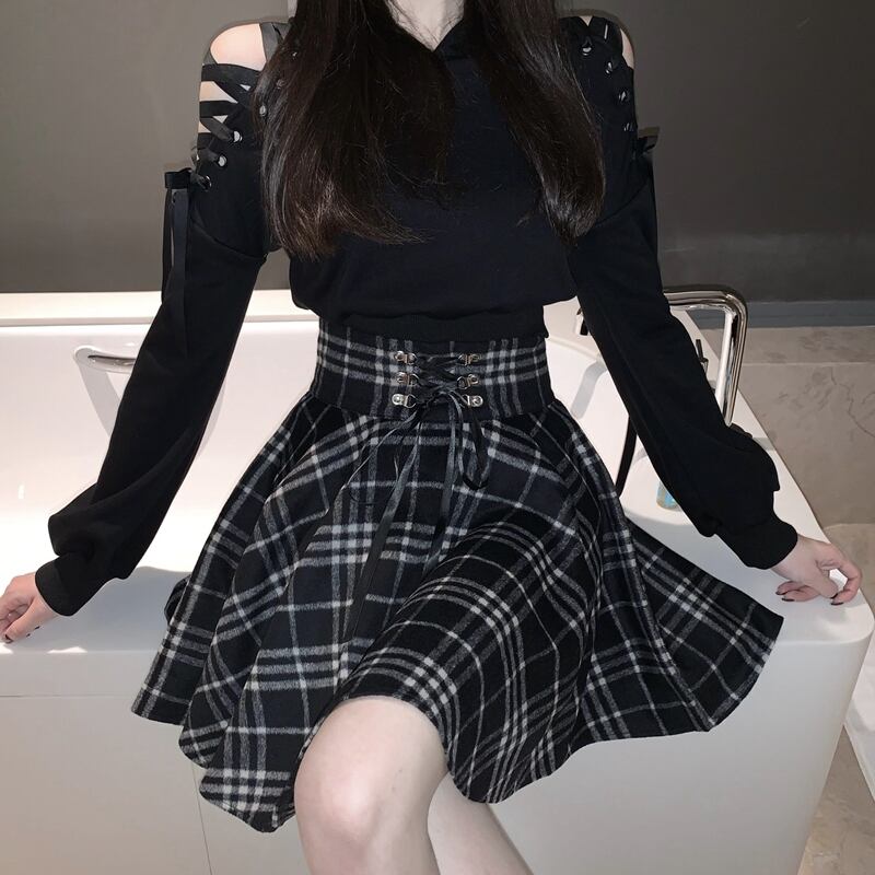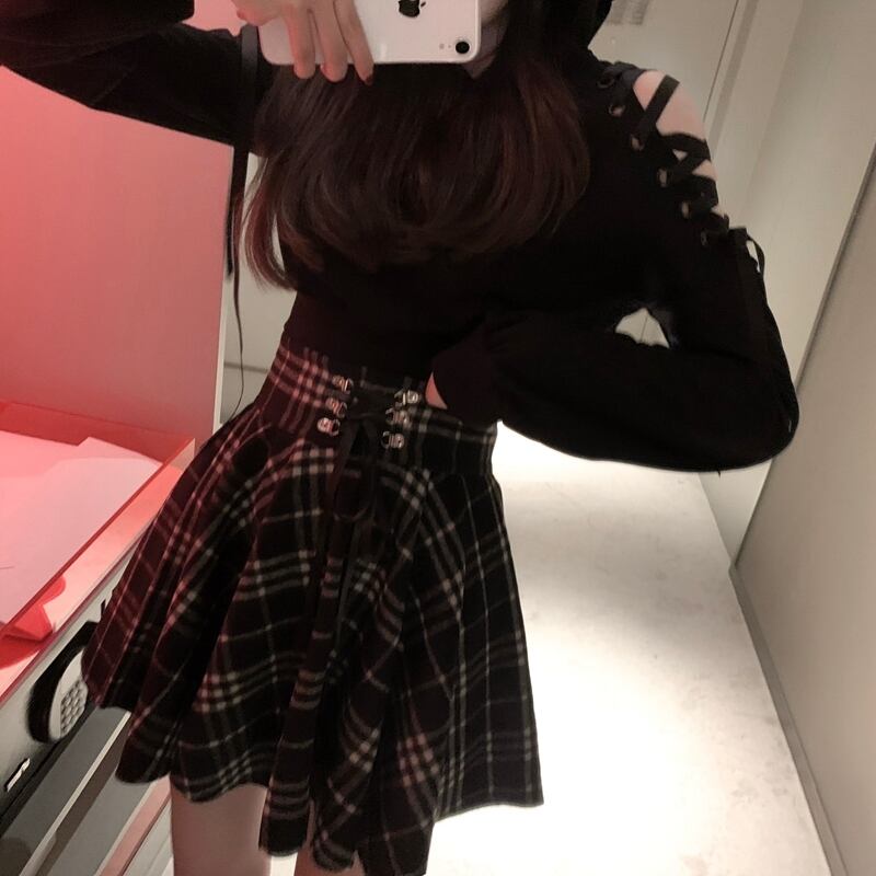 ミニスカート ボトムス チェック柄 ミニ丈 スカート レースアップ リボン リボン結び ハイウエスト Aライン 台形 美シルエット フレア 綿 コットン かわいい 可愛い ガーリー ラブリー クール モード系 主役級 モノトーン 女の子 おしゃれ お洒落 通学 お出かけ デート 旅行 休日 普段使い 普段着 着回し レディース S M L XL ブラック 4580