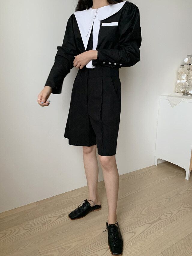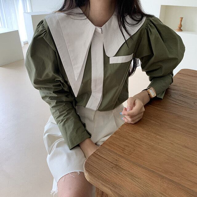 アシンメトリー襟 ブラウス トップス ブラウス 袖あり 長袖 パフスリーブ 襟付き 前開き かわいい 大人可愛い きれいめ シンプル カジュアル おしゃれ お洒落 大人可愛い 大人女子 ガーリー 個性的 無地 春 夏 秋 10代 20代 30代 レディース OL 通勤 学生 通学 デート お出かけ 女子会 休日 着回し 普段使い 韓国 韓国系 オルチャン 色展開 黒 ブラック 3137