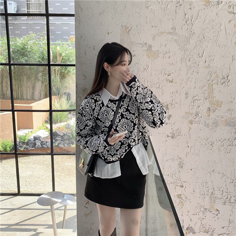 ラウンドネックセーター トップス セーター 袖あり 長袖 ラウンドネック ウール かわいい 大人可愛い きれいめ シンプル カジュアル おしゃれ お洒落 レトロ 個性的 花柄 フラワー 秋 冬 10代 20代 30代 レディース 学生 通学 デート お出かけ 女子会 休日 着回し 普段使い 韓国 韓国系 オルチャン 色展開 3340