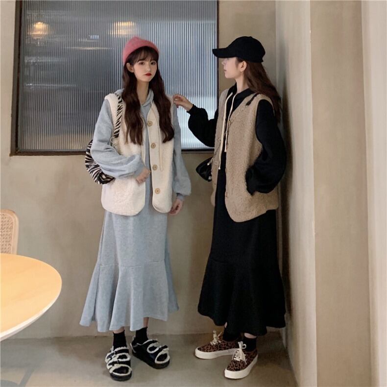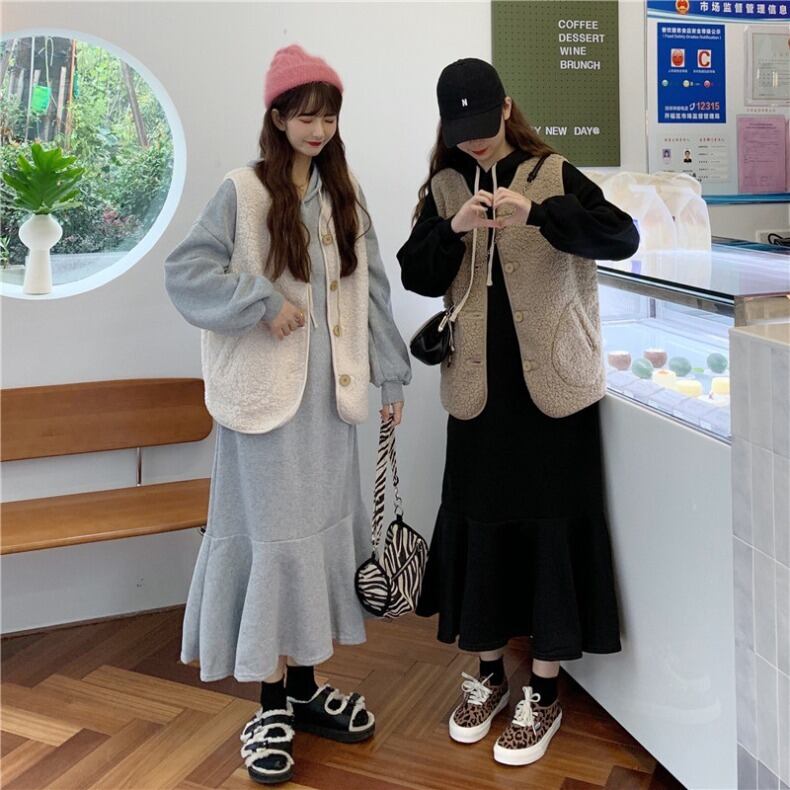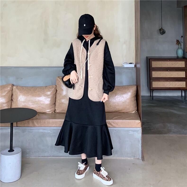 パーカーワンピース ベスト トップス ワンピース ベスト フレアワンピース ロング ロング丈 袖あり 長袖 フレア マーメイド 切り替えデザイン フード付き ポリエステル かわいい 大人可愛い シンプル カジュアル おしゃれ お洒落 レトロ 大人可愛い 大人女子 こなれ感 ラフ 無地 秋 冬 10代 20代 30代 レディース 学生 通学 デート お出かけ 公園デビュー 女子会 休日 着回し 普段使い 重ね着 韓国 韓国系 オルチャン 色展開 黒 ブラック 茶色 ブラウン 3373