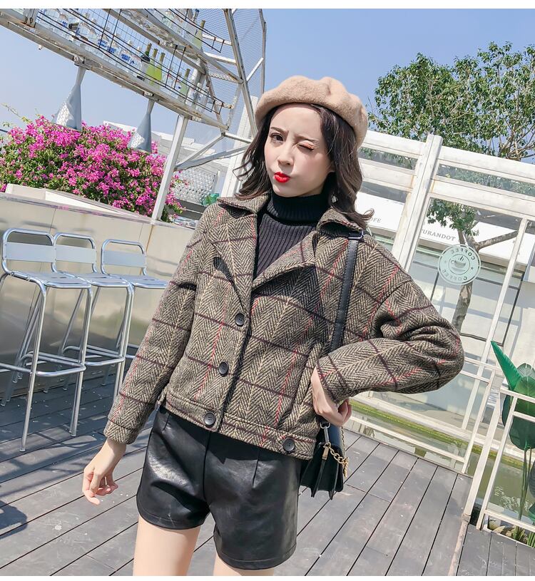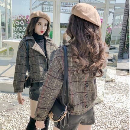 チェック柄Pコート アウター コート ショート ショート丈 袖あり 長袖 Vネック 襟付き 前開き 綿 ポリエステル かわいい 大人可愛い きれいめ シンプル カジュアル 大人 おしゃれ お洒落 レトロ 大人可愛い 大人女子 こなれ感 チェック柄 秋 冬 10代 20代 30代 レディース 学生 通学 デート お出かけ 公園デビュー 女子会 休日 着回し 普段使い 重ね着 韓国 韓国系 オルチャン サイズ S M L XL 色展開 灰色 3608