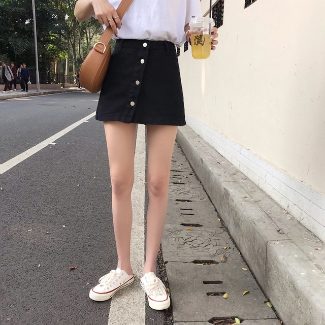 ボトムス デニム スカパン スカートパンツ ミニスカート デニムスカート ミニ丈 ショート丈 パンツ 膝上 ミニ スカート風 ショートパンツ フロントボタン ラップ風 シンプル 無地 ポケット付き Aライン 台形シルエット 脚長 美シルエット カジュアル おしゃれ お洒落 通勤 通学 学生 女の子 お出かけ デート 旅行 休日 普段使い 普段着 着回し 10代 20代 レディース 春 夏 秋 S M L XL ブラック 964