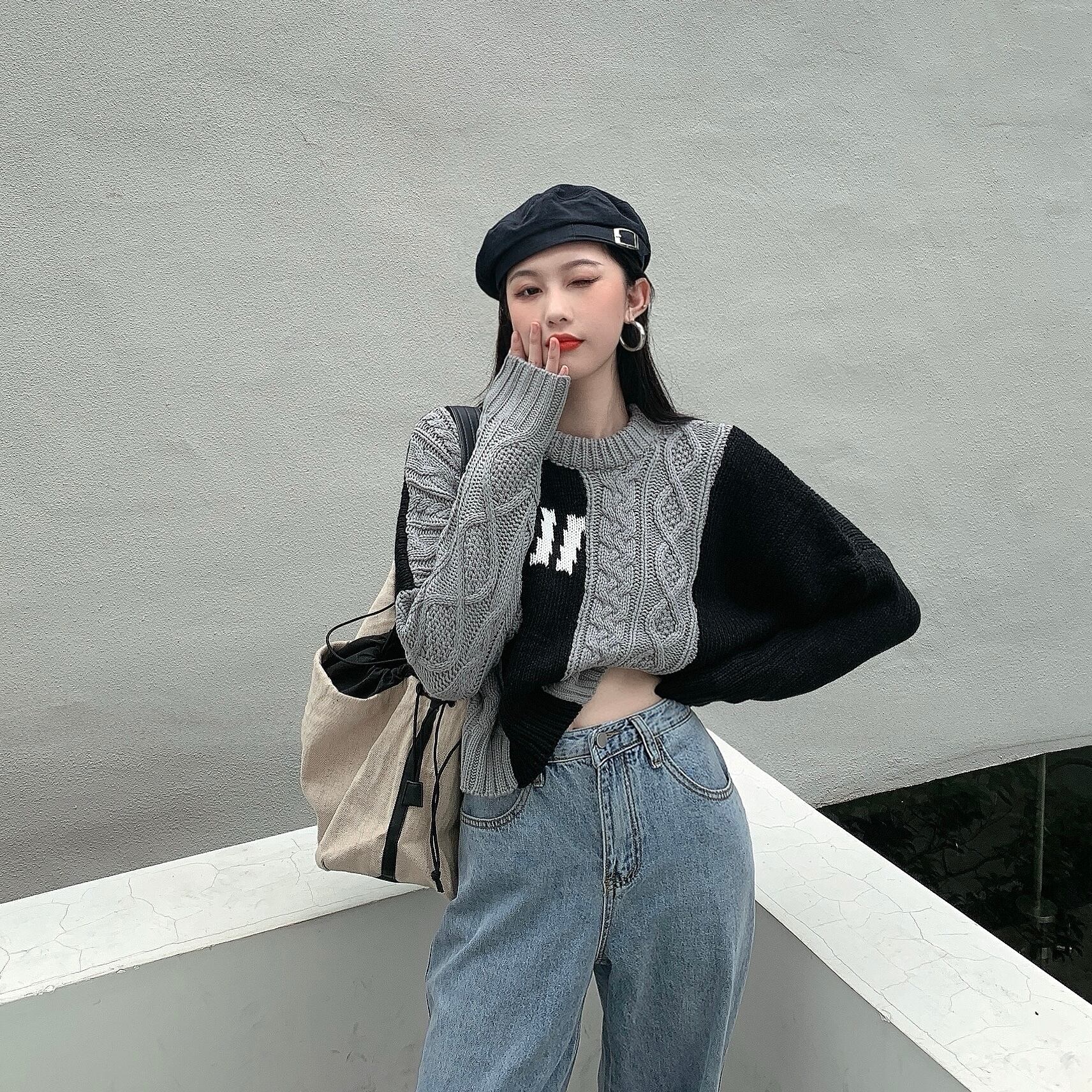 ドッキングデザインの遊び心あるセーター♪