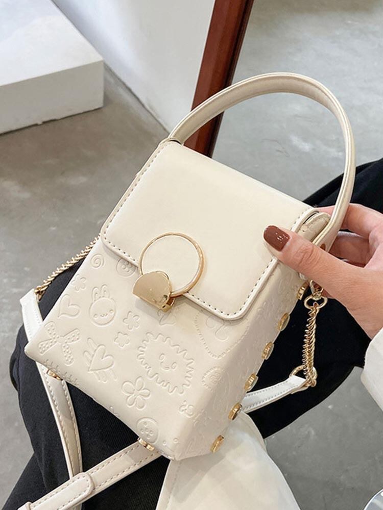 バッグ ショルダーバッグ カバン PU レザー ミニバッグ ミニ 小さめ ハンド ショルダー 2way 皮革 かばん 鞄 bag 斜め掛け 斜めがけ 肩掛け 肩がけ 四角 スクエア 磁気バックル バイカラー 配色 型押し 柄 ゴールド チェーン ストラップ 調節可能 取り外し可能 おしゃれ お洒落 かわいい 可愛い 通勤 通学 学生 お出かけ デート 旅行 休日 普段使い 女の子 レディース 10代 20代 夏 ワンサイズ ホワイト 白 ブラック 黒 イエロー 黄色 1024