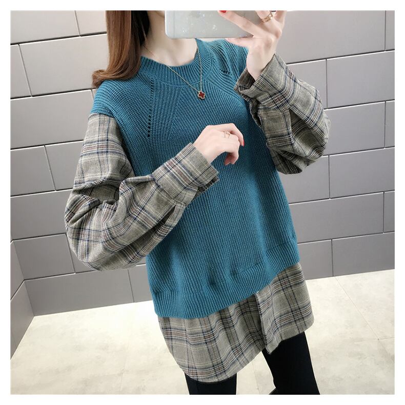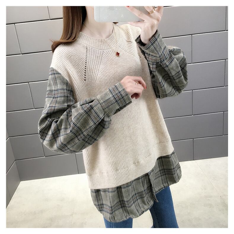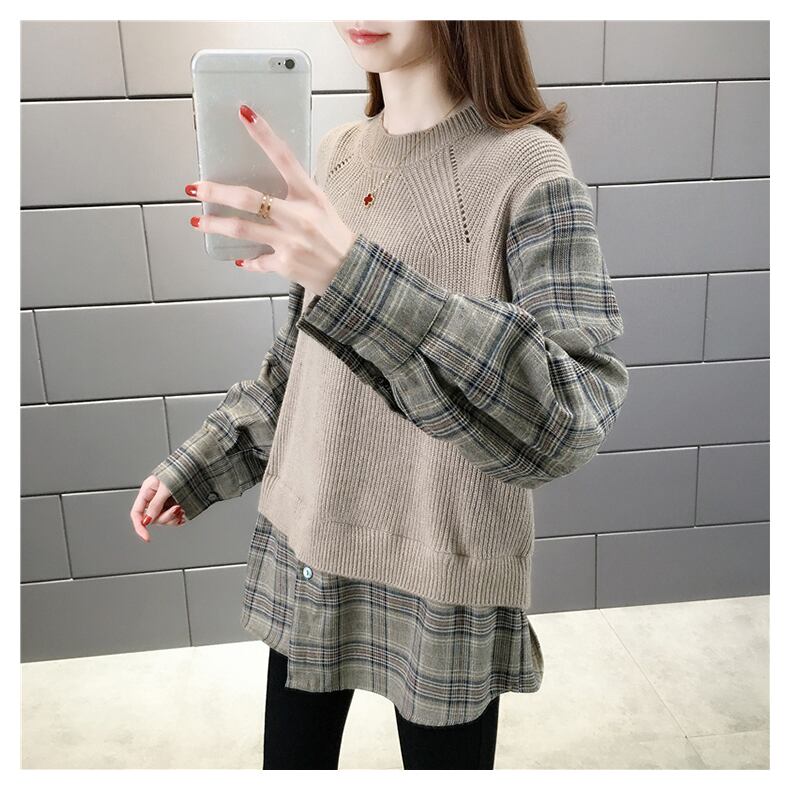 レイヤード風プルオーバー トップス プルオーバー 袖あり 長袖 ラウンドネック ドッキング ドッキング かわいい 大人可愛い シンプル カジュアル おしゃれ お洒落 大人可愛い 大人女子 こなれ感 無地 チェック柄 秋 冬 10代 20代 30代 レディース 学生 通学 デート お出かけ 女子会 休日 着回し 普段使い 重ね着 韓国 韓国系 オルチャン サイズ S M L XL 黒 ブラック 緑 グリ 3802