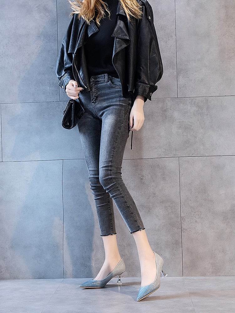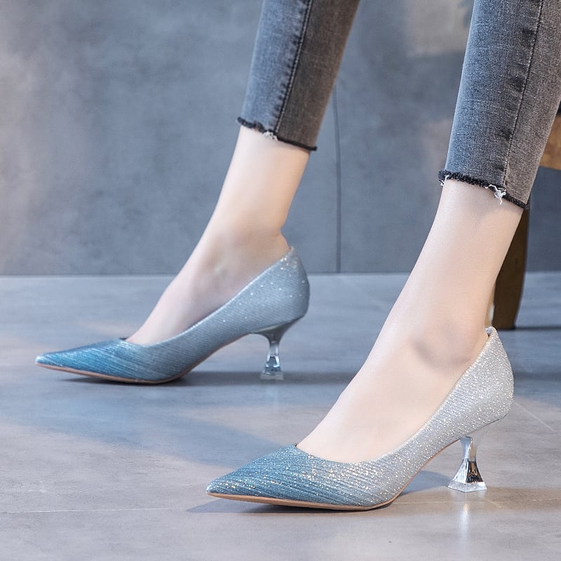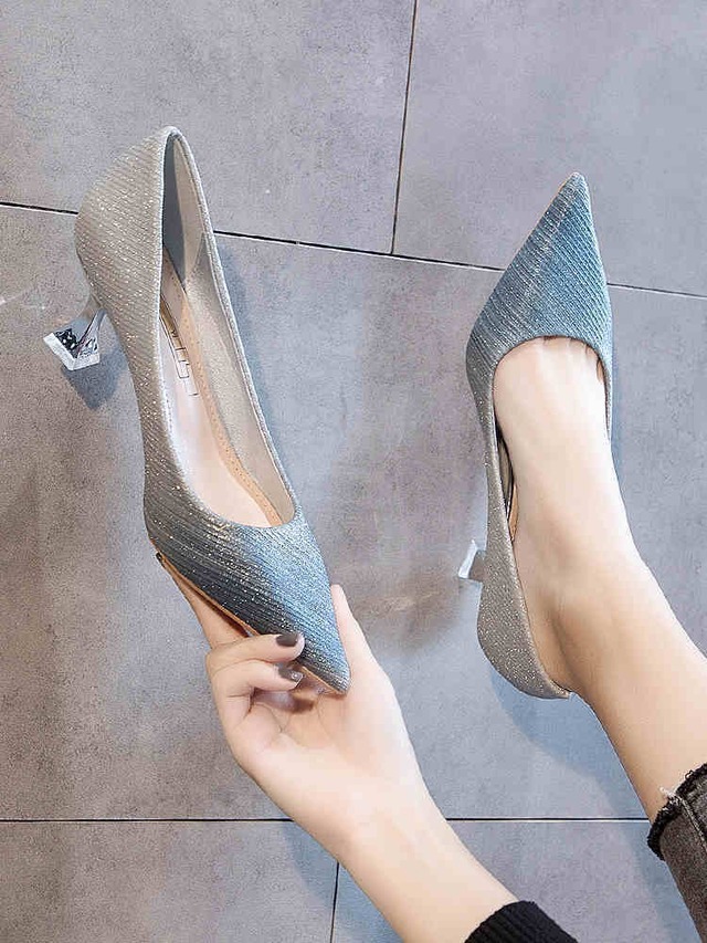 レディ度が高まるポインテッドトゥのグリッターパンプス?
