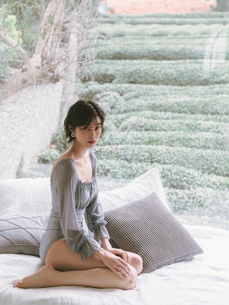 水着 レディース ワンピース水着 カジュアル水着 長袖 袖あり フリル袖 スクエアネック くしゅくしゅ ギャザーデザイン シャーリング バックシャン レースアップ 背中魅せ 背中開き ワイヤーなし パッド付き 体型カバー 二の腕カバー 日焼け防止 おしゃれ お洒落 大人女子 大人可愛い かわいい 可愛い キュート ガーリー 海 ビーチ プール リゾート 休日 デート 旅行 10代 20代 M L X 1225