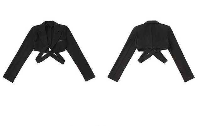 ショートジャケット クロス ショート丈 ジャケット スーツ 上着 襟付き スーツ襟 アンダークロス デザイン ウエスト 細見え 肌魅せ 長袖 袖あり 肩パッド付き ポケット付き シンプル 無地 スリム おしゃれ お洒落 個性的 大人 クール かっこいい 通勤 通学 学生 お出かけ デート 旅行 休日 普段使い レディース 春 秋 10代 20代 S M L 4747