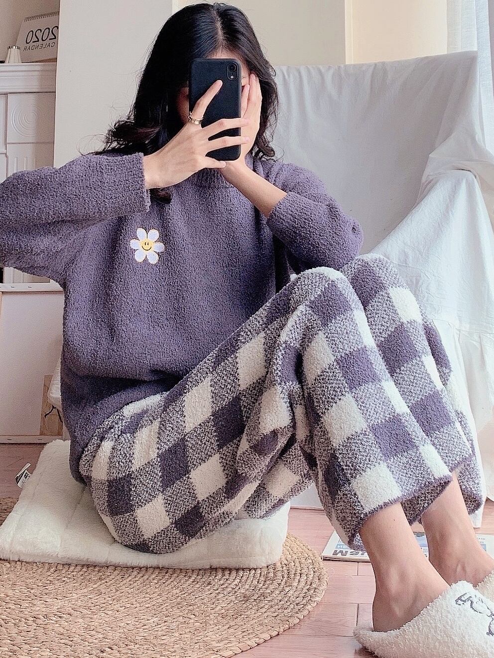 ふわもこっとかわいいトップス×チェック柄パンツの2点セットパジャマ?