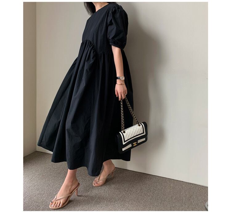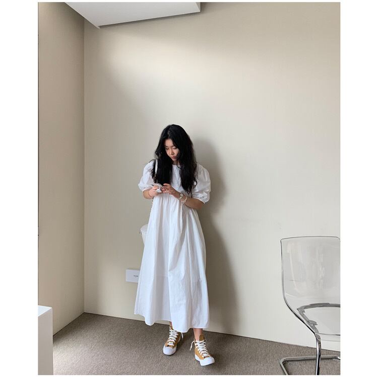 パフスリーブワンピース ワンピース フレアワンピース ロング ロング丈 ミディアム丈 袖あり 半袖 パフスリーブ ラウンドネック フレア Aライン 切り替えデザイン 綿 ポリエステル 大人可愛い きれいめ シンプル カジュアル 大人 おしゃれ お洒落 大人可愛い 大人女子 キュート ガーリー 無地 春 夏 10代 20代 30代 レディース 学生 通学 デート お出かけ 女子会 休日 着回し 普段使い 韓国 韓国系 オルチャン サイズ S M L XL 色展開 白 ホワイト 黒 ブラッ 5263