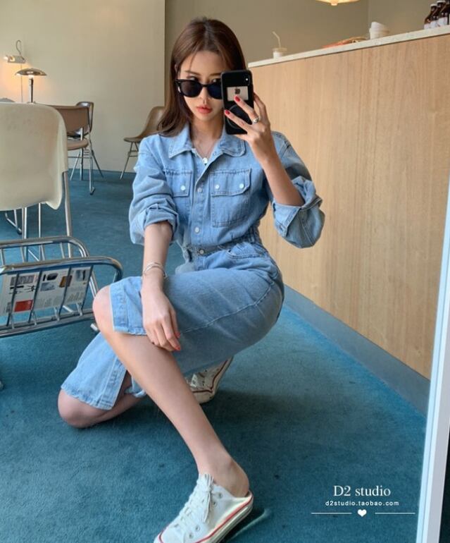 デニムシャツワンピース ワンピース シャツワンピース 膝下 ミモレ ミモレ丈 ミディアム丈 袖あり 長袖 襟付き Iライン ドッキング 前開き デニム ブルーデニム かわいい 大人可愛い シンプル カジュアル おしゃれ お洒落 大人可愛い 大人女子 こなれ感 ラフ 無地 春 夏 秋 10代 20代 30代 レディース 学生 通学 デート お出かけ 女子会 休日 着回し 普段使い 韓国 韓国系 オルチャン サイズ S M L 色展 5266