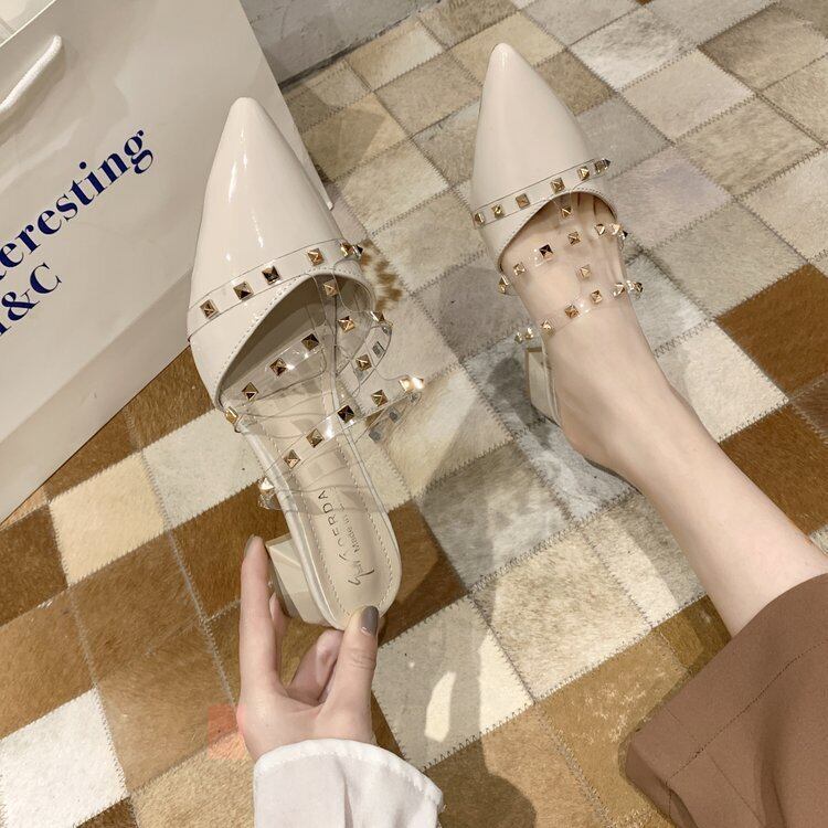 シューズ 靴 くつ クツ ミュール レディースシューズ ポインテッドトゥパンプス ヒール 3cmヒール ポインテッドトゥ 履きやすい スタッズ PU かわいい 大人可愛い きれいめ シンプル カジュアル 大人 おしゃれ お洒落 かっこいい 無地 春 夏 20代 30代 レディース ママ デート お出かけ 女子会 お泊まり 休日 普段使い 韓国 オルチャン ファッション コーデ ホワイト ブラ 1434