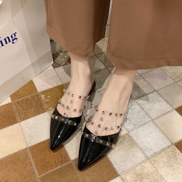 スタッズ×ポインテッドトゥでカッコいい印象のミュールサンダル♪