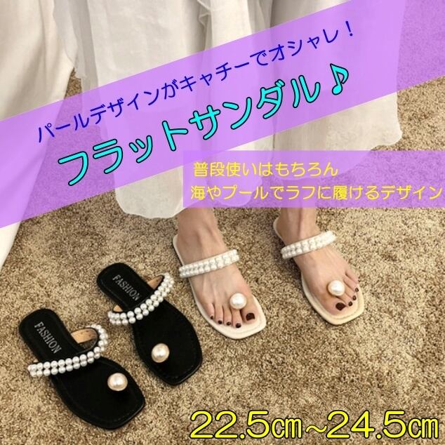 鼻緒がパールになった変わったデザインのフラットサンダル♪