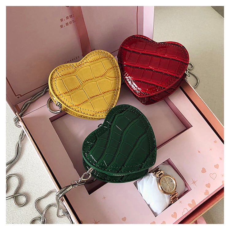 クロコの型押し、ハート型が可愛いミニショルダーバッグ♪