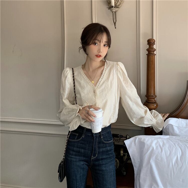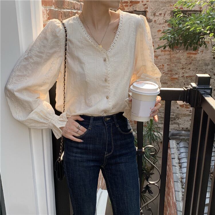 Ⅴネックレースブラウス トップス ブラウス 袖あり 長袖 Vネック レース 前開き かわいい 大人可愛い きれいめ シンプル カジュアル 大人 おしゃれ お洒落 大人可愛い 大人女子 こなれ感 ラブリー キュート ガーリー 無地 春 夏 秋 10代 20代 30代 レディース デート お出かけ 公園デビュー 女子会 休日 着回し 普段使い 重ね着 韓国 韓国系 オルチャン ファッション 色展開 茶色 ブラウン 4499