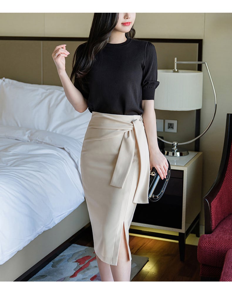 ウエストリボンタイトスカート スカート ボトムス タイトスカート ミモレ ミモレ丈 ミディアム丈 スリム タイト 細身 ウエストリボン スリット 大人可愛い きれいめ シンプル カジュアル おしゃれ お洒落 大人可愛い 大人女子 こなれ感 エレガント 無地 春 秋 冬 10代 20代 30代 レディース OL 通勤 学生 通学 デート お出かけ 女子会 休日 着回し 普段使い 韓国 韓国系 オルチャン ファッション S M L XL 色展開 黒 ブラック 4502