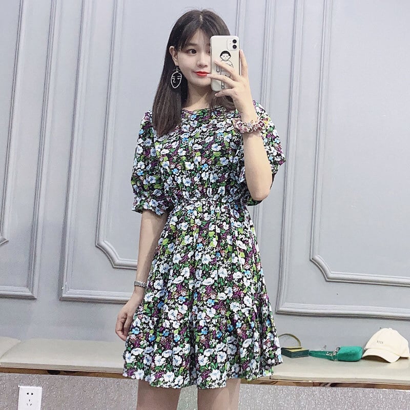 ワンピース 2色展開 フレアワンピース ティアードワンピース ショート ショート丈 膝上 膝下 袖あり 半袖 5分袖 ボリューム袖 クルーネック Aライン 切り替えデザイン フリル ウエストマーク かわいい 大人可愛い きれいめ シンプル カジュアル 大人 上品 おしゃれ お洒落 花柄 小花柄 フラワー 春 夏 秋 10代 20代 30代 レディース デート お出かけ 女子会 お泊まり 休日 リゾート 旅行 普段使い 韓国 オルチャン M 1401