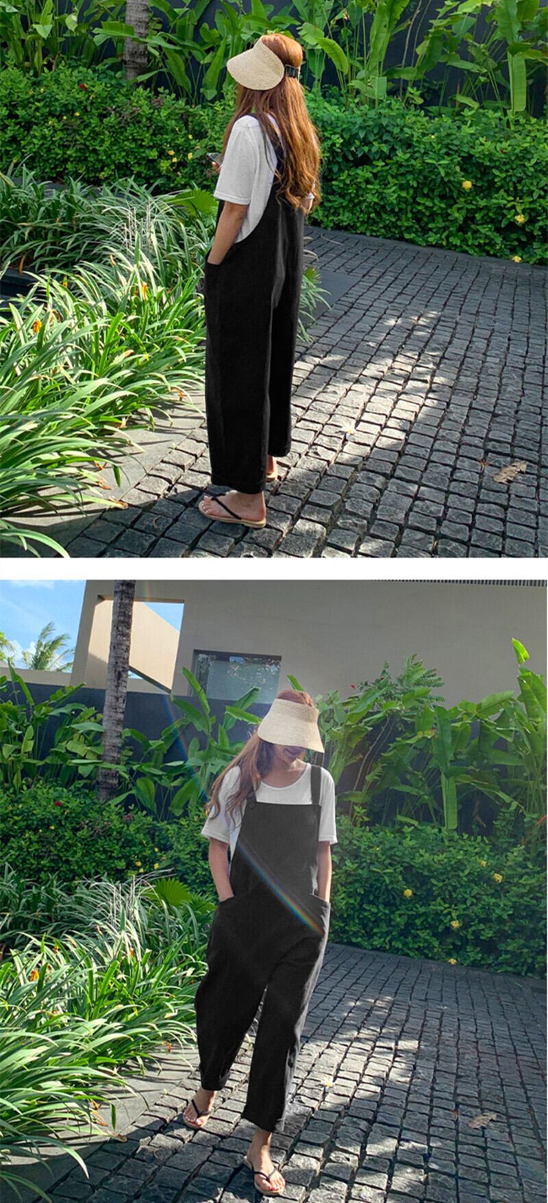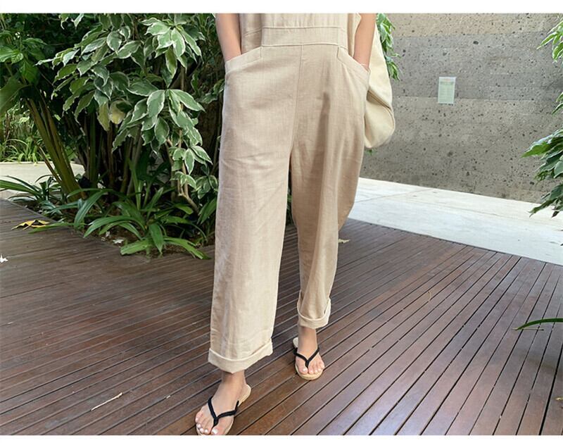 ワイドサロペット ボトムス サロペット 袖なし ラウンドネック ワイド 綿 麻 リネン 大人可愛い シンプル カジュアル おしゃれ お洒落 大人可愛い 大人女子 こなれ感 ラフ 無地 春 夏 10代 20代 30代 レディース 学生 通学 デート お出かけ 女子会 休日 着回し 普段使い 重ね着 楽ちん サイズ S M L XL 色展開 黒 ブラ 5282