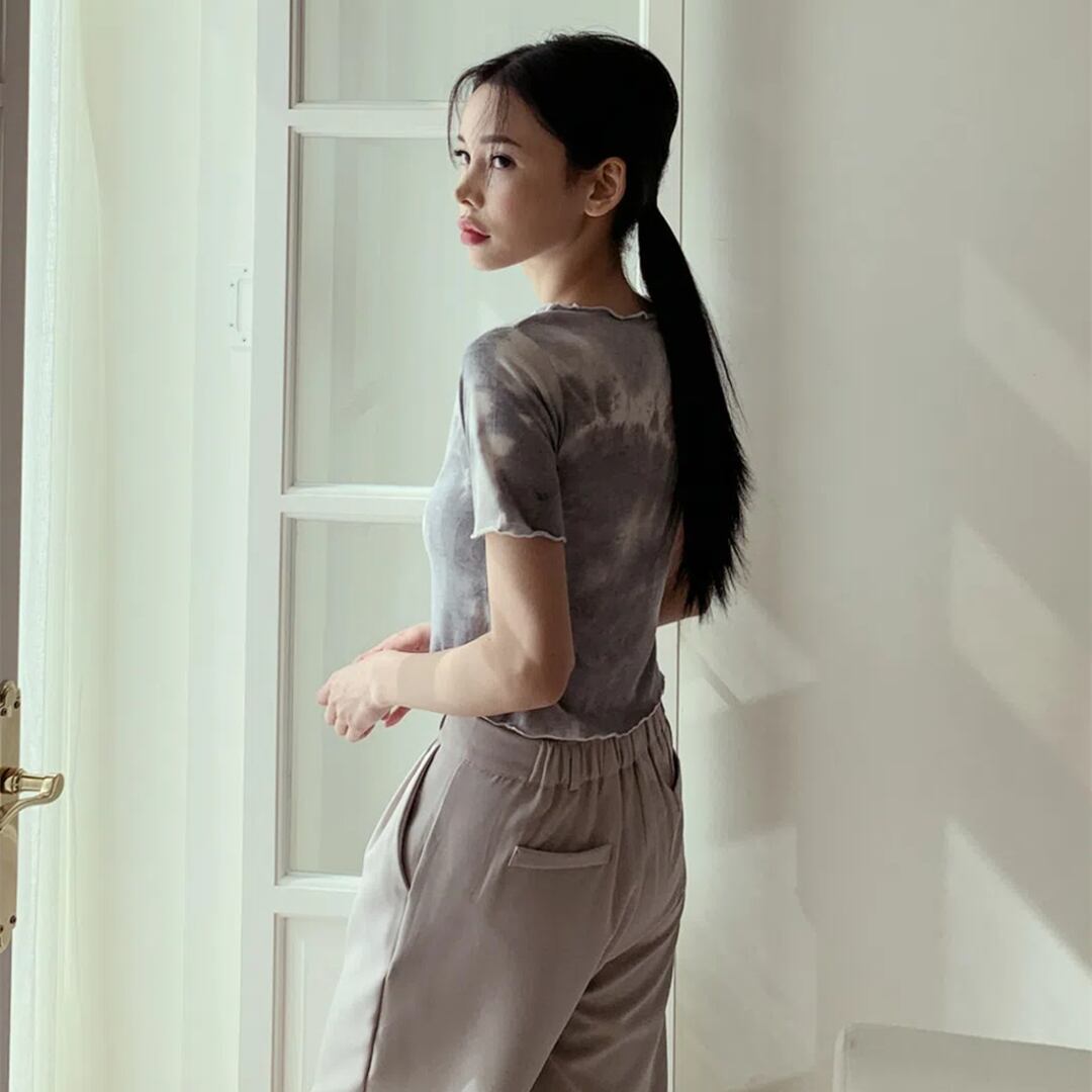 タイダイ染めTシャツ トップス Tシャツ ショート ショート丈 袖あり 半袖 ラウンドネック かわいい 大人可愛い きれいめ シンプル カジュアル おしゃれ お洒落 大人可愛い 大人女子 ラフ 個性的 柄 春 夏 10代 20代 30代 レディース 学生 通学 デート お出かけ 公園デビュー 女子会 休日 着回し 普段使い 重ね着 韓国 韓国系 オルチャン ファッション 色展開 5286