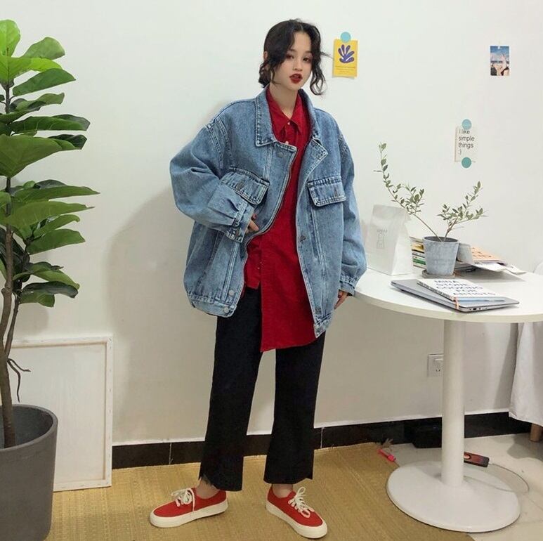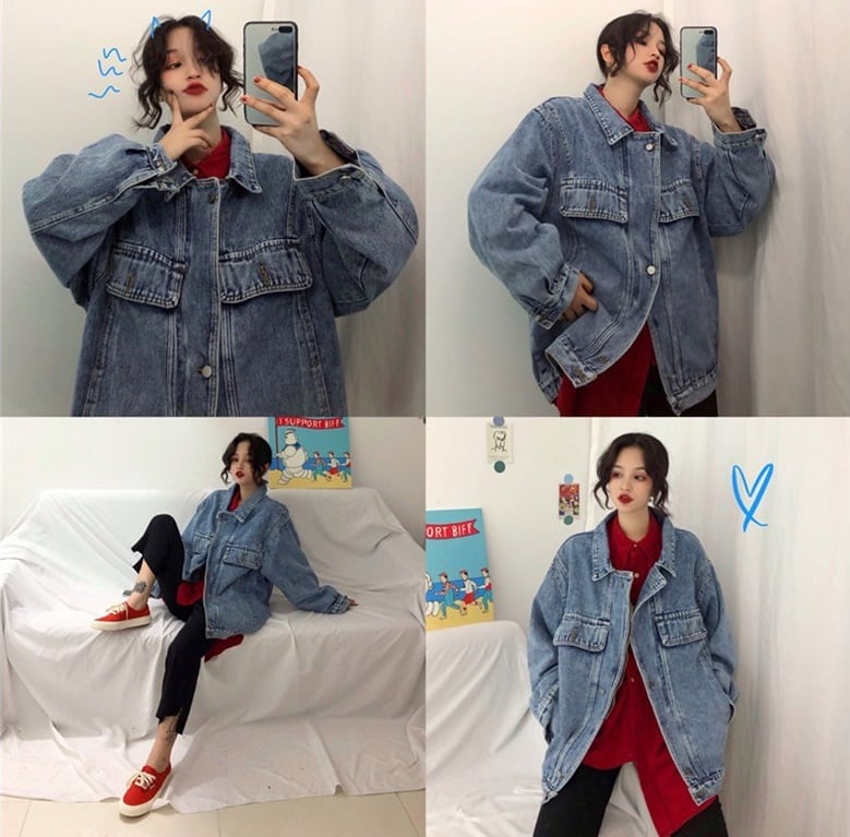 デニム ジャケット オーバーサイズ アウター BF風 フロントジッパー 前開き 襟付き ポロ襟 ポケット付き 長袖 袖あり ゆったり ゆる ルーズ 大きめ 綿 コットン メンズライク ボーイッシュ おしゃれ お洒落 かわいい 可愛い 通勤 通学 学生 お出かけ デート 旅行 休日 普段着 普段使い 着回し レディース 10代 20代 春 秋 S M 4188