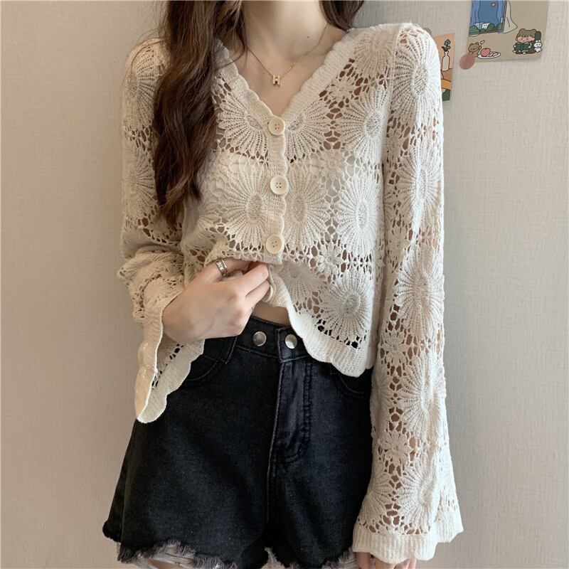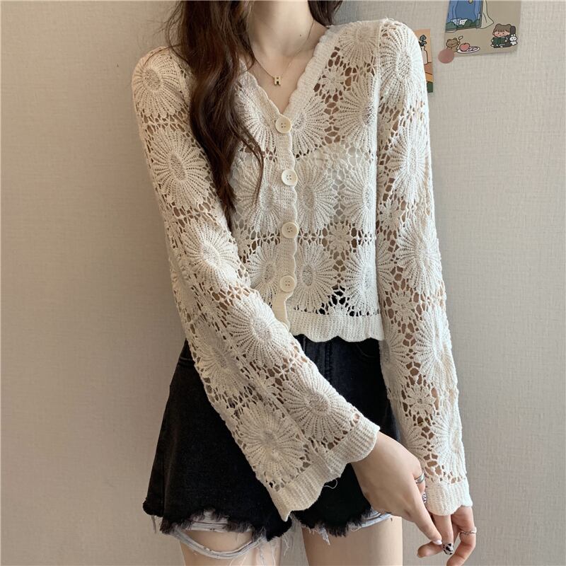 クロシェ編みカーディガン トップス カーディガン 袖あり 長袖 萌袖 Vネック レース 前開き クロシェ かわいい 大人可愛い シンプル カジュアル おしゃれ お洒落 大人可愛い 大人女子 ラブリー キュート ガーリー 無地 春 夏 秋 10代 20代 30代 レディース 学生 通学 デート お出かけ 女子会 休日 着回し 普段使い 重ね着 韓国 韓国系 オルチャン 色展開 白 ホワイト 5324