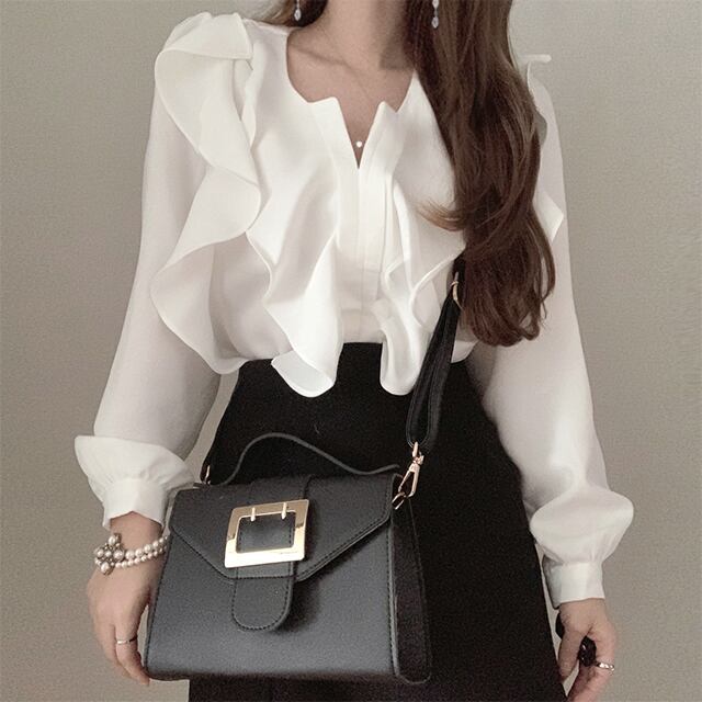 トップス シャツ ブラウス 袖あり 長袖 パフスリーブ Vネック 切り替えデザイン フリル かわいい 大人可愛い きれいめ 大人 上品 おしゃれ お洒落 かっこいい 無地 春 夏 秋 入学式 入園式 卒業式 卒園式 20代 30代 レディース ママ デート お出かけ 女子会 お泊まり 休日 リゾート 旅行 韓国 オルチャン フリーサイズ ワンサイズ ホワ 5055