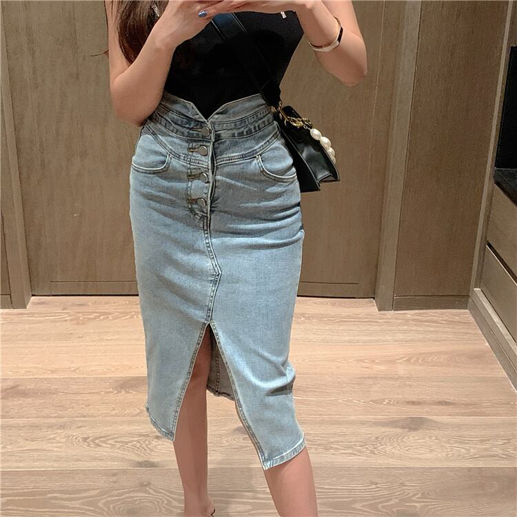 スカート ボトムス デニムスカート 膝下 ミディアム丈 ミドル丈 タイト 細身 Iライン スリット ハイウエスト デニム ブルーデニム かわいい 大人可愛い きれいめ シンプル カジュアル 大人 上品 おしゃれ お洒落 かっこいい 無地 春 夏 秋 冬 オールシーズン 20代 30代 レディース ママ デート お出かけ 女子会 お泊まり 休日 リゾート 旅行 普段使い 韓国 オルチャン コーデ S 5058