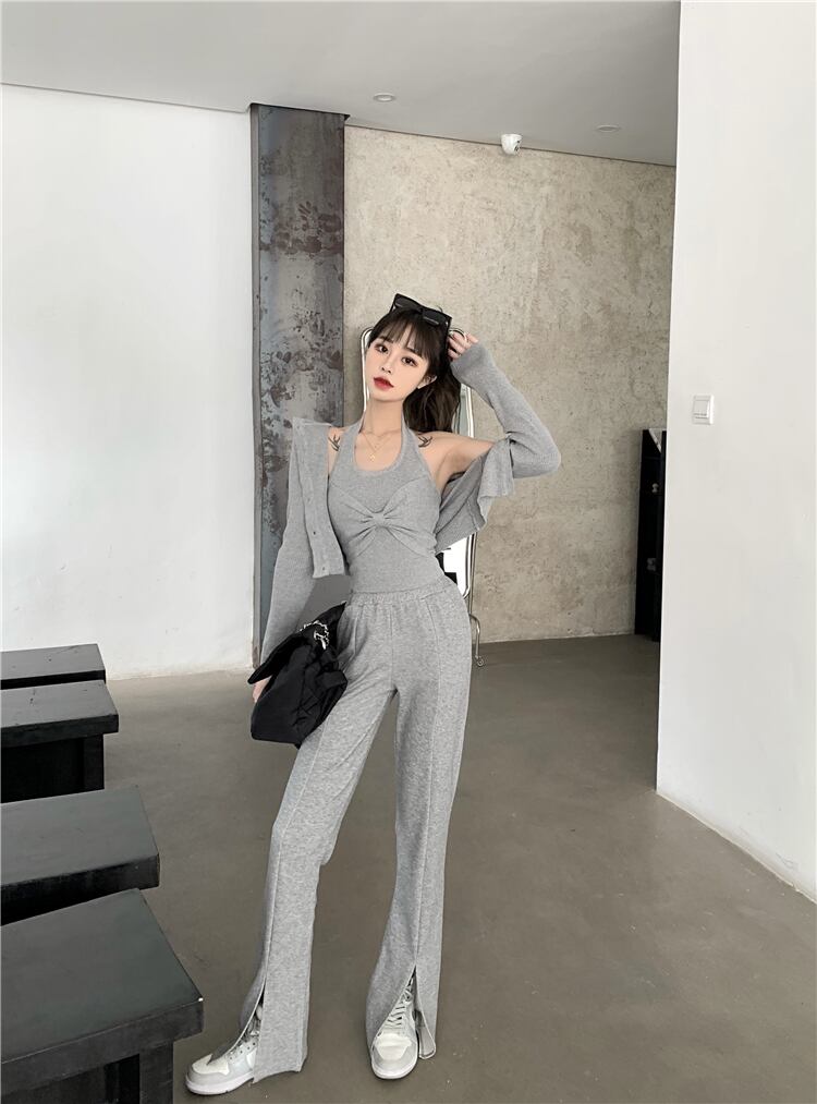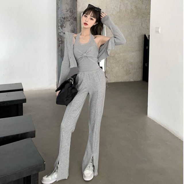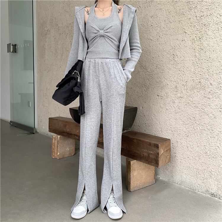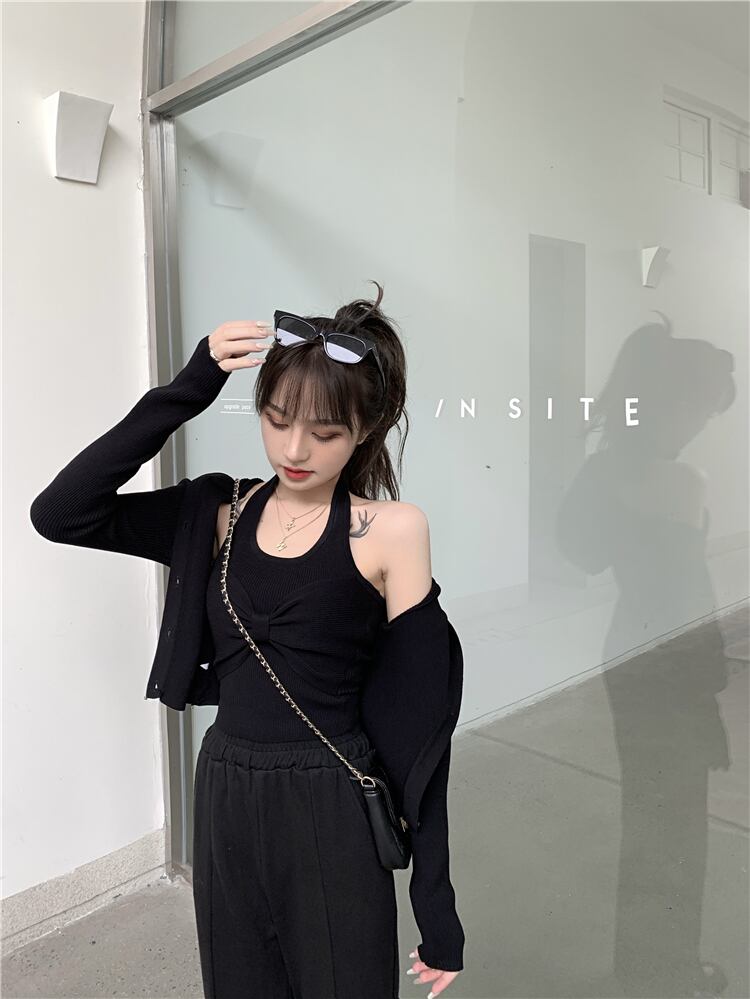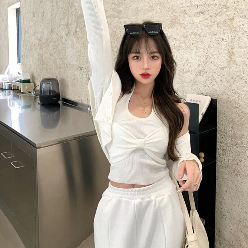 ニットカーディガン ハイウエストパンツ トップス パンツ カーディガン キャミソール 袖あり 長袖 Vネック 前開き かわいい 大人可愛い シンプル カジュアル おしゃれ お洒落 大人可愛い 大人女子 こなれ感 ラフ ボーイッシュ スポーティー 無地 春 夏 秋 10代 20代 30代 レディース 学生 通学 デート お出かけ 女子会 休日 着回し 韓国 韓国系 オルチャン サイズ S M 色展開 白 ホワイト 黒 ブラック 5339