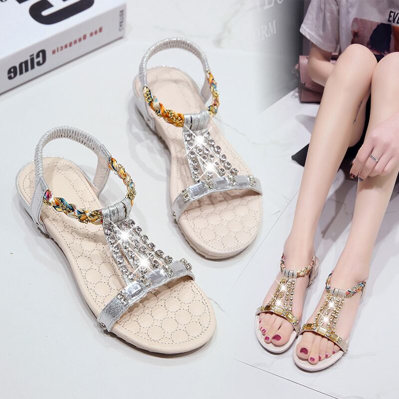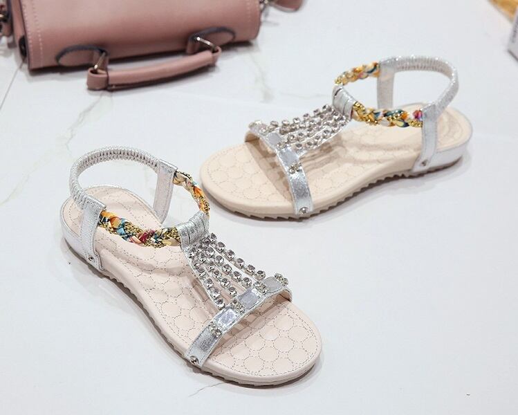 サンダル ビジュー 装飾 ラインストーン PU ゴムバンド ボヘミアン アンクルストラップ ローヒール 3cmヒール フラット キラキラ 滑り止め 華やか 存在感 柔らかい 履きやすい 歩きやすい 大人可愛い かわいい 可愛い 大人女子 おしゃれ お洒落 通勤 通学 学生 お出かけ デート 旅行 休日 普段使い レディース 10代 20代 夏 22.5cm 23.0cm 23.5cm 24.0cm 24.5cm 25.0cm シルバー 銀色 4215