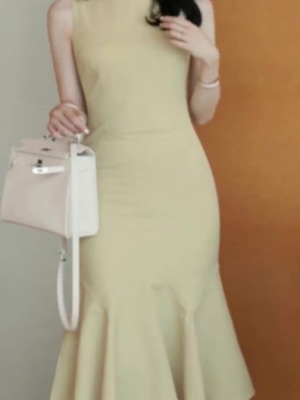 ワンピース ノースリーブ ドレス フレア マーメイド 無地 シンプル ラウンドネック 袖なし ハイウエスト ウエスト 細見え スリム タイト 細身 膝下 ひざ下 ロング ミディ丈 レディライク 美シルエット 大人 上品 大人可愛い かわいい 可愛い 大人女子 おしゃれ お洒落 通勤 通学 学生 お出かけ デート 旅行 休日 普段着 普段使い 20代 30代 レディース 夏 S M L XL ブラック 黒 ライトイエロー 黄色 4229