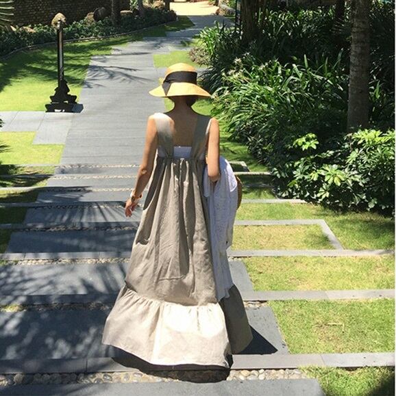 ワンピース 綿 麻 コットン リネン ノースリーブ 袖なし キャミワンピ フレア 無地 シンプル スクエアネック ハイウエスト 切り替え 背中開き バックシャン ゆったり ゆる ルーズ ふんわり 体型カバー ラフ 楽ちん 膝下 ひざ下 ロング マキシ丈 大人 マタニティ ママ 公園デビュー 大人可愛い かわいい 可愛い 大人女子 おしゃれ お洒落 通勤 通学 学生 お出かけ デート 旅行 休日 普段着 普段使い 10代 20代 レディース 夏 S M L XL グレー 灰色 ダークグレー 4233