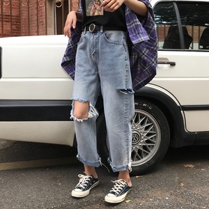 ダメージジーンズ ズボン デニムパンツ ストレート カジュアル ラフ ハイウエスト 春 夏 秋 10代 20代 30代 レディース お出かけ 休日 普段使い 楽ちん S M L XL 2XL 3XL 5179