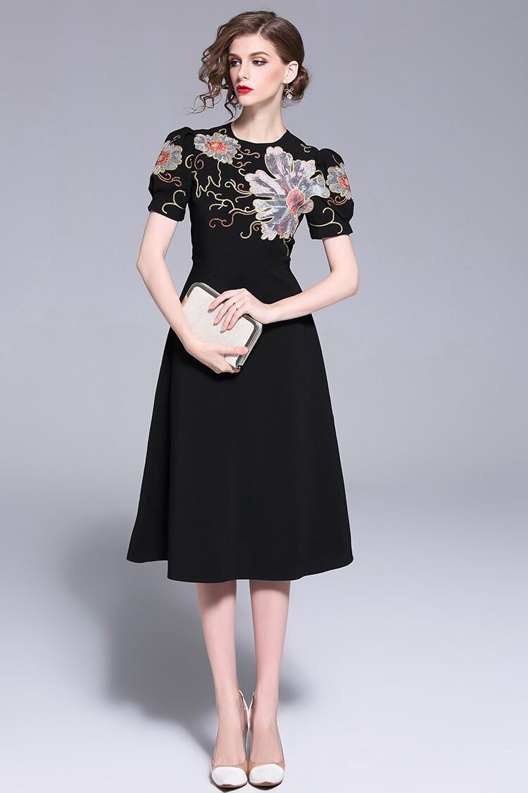 胸元の刺繍がゴージャスで華やかな半袖ワンピース♪