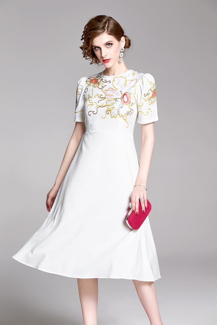 刺繍ワンピース ワンピース フレアワンピース 膝丈 ひざ丈 袖あり 半袖 ラウンドネック フレア Aライン 刺繍 かわいい 大人可愛い きれいめ 大人 上品 おしゃれ お洒落 大人可愛い 大人女子 エレガント 無地 フラワー 春 夏 10代 20代 30代 レディース 学生 通学 デート お出かけ 公園デビュー 女子会 休日 着回し 普段使い サイズ S M L XL 2XL 色展開 白 ホワイト 5621