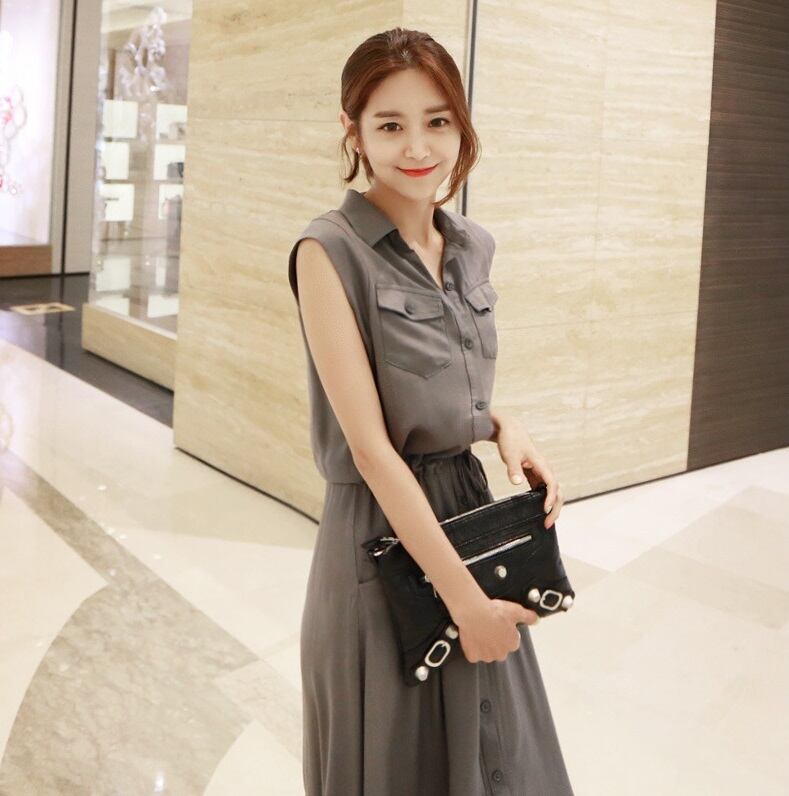 ワンピース シフォン ノースリーブ 袖なし ミモレ丈 ロング シャツワンピース シャツワンピ 襟付き ポケット付き ウエストリボン リボン結び ハイウエスト ウエストゴム フロントボタン ゆったり ゆる ルーズ ふんわり ラフ カジュアル 大人可愛い かわいい 可愛い 大人女子 おしゃれ お洒落 通勤 通学 学生 お出かけ デート 旅行 休日 普段着 普段使い 着回し レディース 10代 20代 夏 S M L XL ブラック 黒 5685