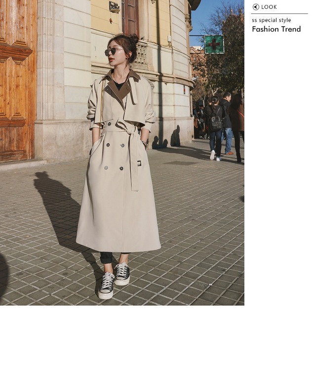 バイカラートレンチコート アウター コート ロング ロング丈 袖あり 長袖 襟付き ベルト ウエストマーク ポリエステル 大人可愛い きれいめ シンプル カジュアル 大人 おしゃれ お洒落 大人可愛い 大人女子 こなれ感 無地 春 秋 10代 20代 30代 レディース OL 通勤 学生 通学 デート お出かけ 公園デビュー 女子会 休日 着回し 普段使い 重ね着 韓国 韓国系 オルチャン ファッション サイズ S M L XL 5792