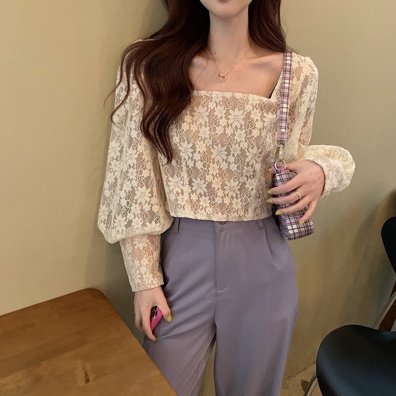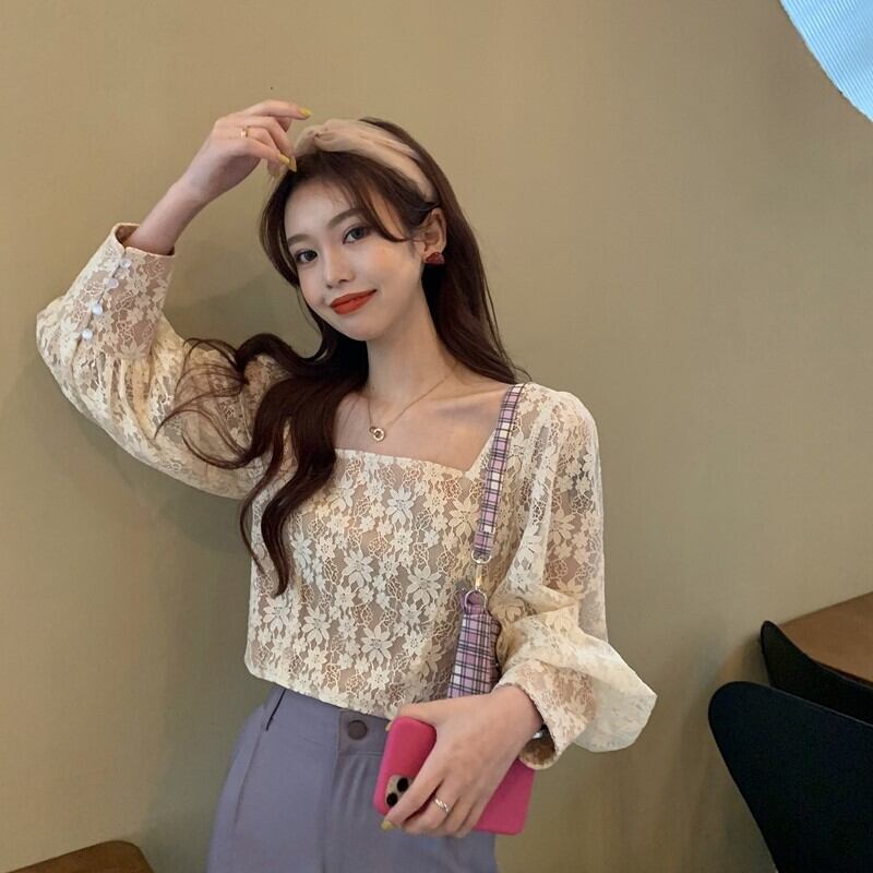 スクエアネックシャツ トップス 長袖 スクエアネック 刺繍 花柄 春 夏 秋 10代 20代 30代 OL 学生 デート お出かけ 普段使い ワンサイズ 1363