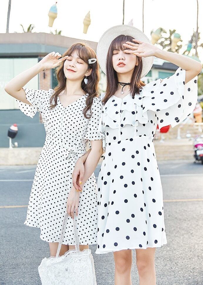 ガーリー感高まるドット柄のミニ丈ワンピース?