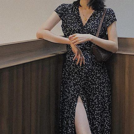 サマーワンピ 花柄 シフォン ワンピース 総花柄 フレンチスリーブ 半袖 袖あり Vネック スリット ロング丈 ロング ミモレ丈 膝下 ひざ下 Aライン ふんわり スリム 細身 カジュアル 大人可愛い かわいい 可愛い 大人女子 おしゃれ お洒落 通勤 通学 学生 お出かけ デート 旅行 休日 普段着 普段使い 10代 20代 レディース 夏 大きいサイズ 3XL 5708