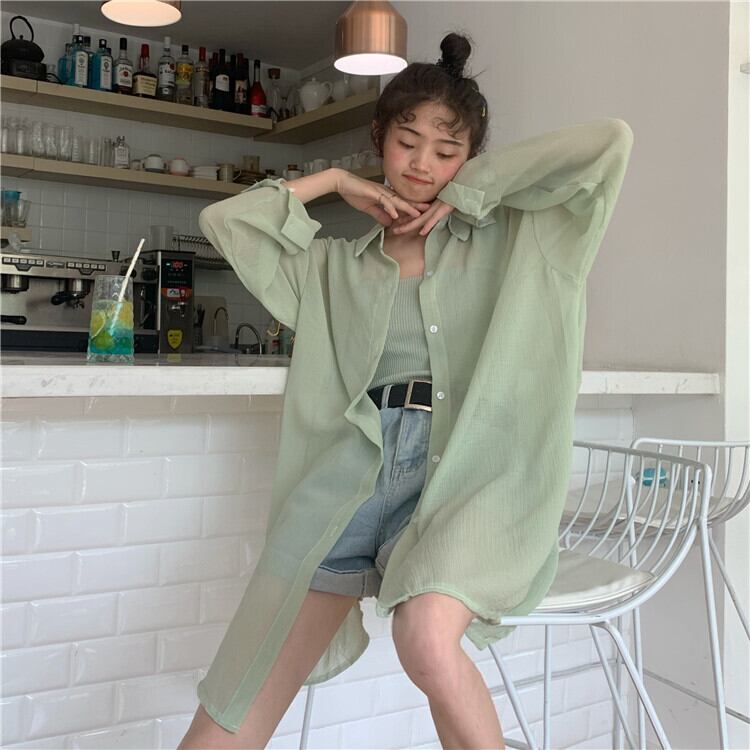 シースルーロングシャツ トップス シャツ 袖あり 長袖 萌袖 襟付き 前開き 透け感 シースルー ポリエステル かわいい 大人可愛い きれいめ シンプル カジュアル 大人 おしゃれ お洒落 大人可愛い 大人女子 こなれ感 無地 春 秋 10代 20代 30代 レディース 学生 通学 デート お出かけ 公園デビュー 女子会 休日 着回し 普段使い 重ね着 韓国 韓国系 オルチャン モテ 色展開 白 ホワイト 青 ブルー 5845