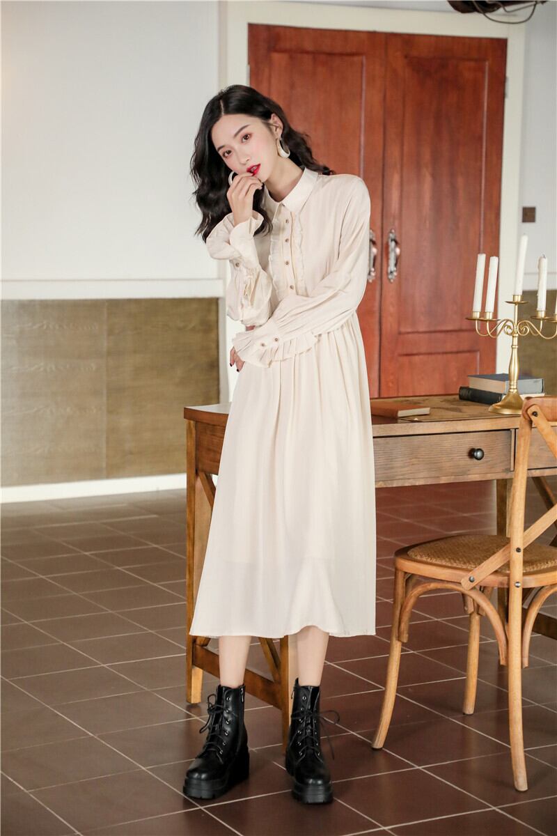 シャツワンピース ワンピース シャツワンピース ロング ロング丈 袖あり 長袖 襟付き フリル 前開き 透け感 シースルー ポリエステル かわいい 大人可愛い きれいめ シンプル カジュアル 大人 おしゃれ お洒落 大人可愛い 大人女子 こなれ感 ラブリー キュート ガーリー 無地 春 秋 10代 20代 30代 レディース 学生 通学 デート お出かけ 公園デビュー 女子会 休日 着回し 普段使い 重ね着 韓国 韓国系 オルチャン サイズ S M 5846