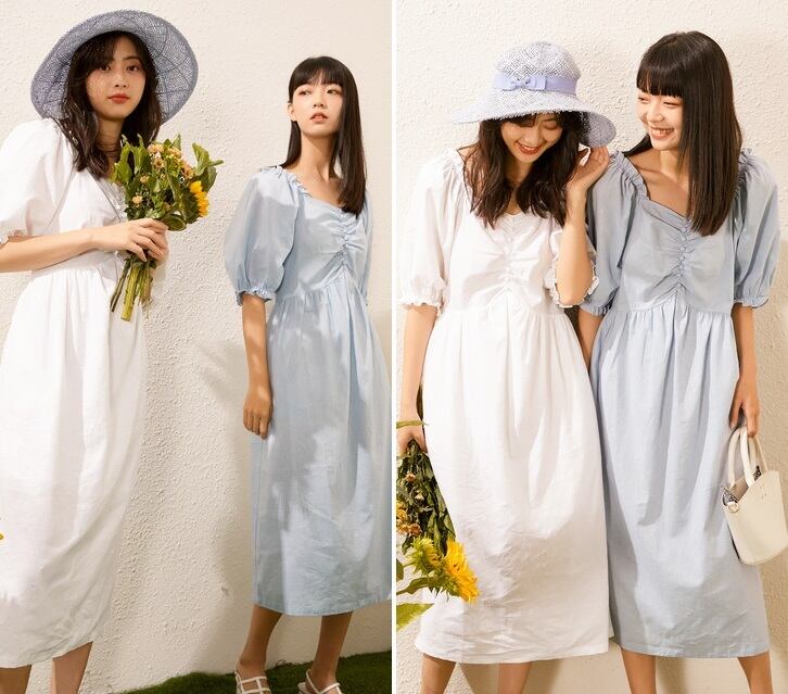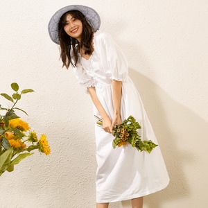 ふんわりシルエットがかわいいパフスリーブのワンピース?