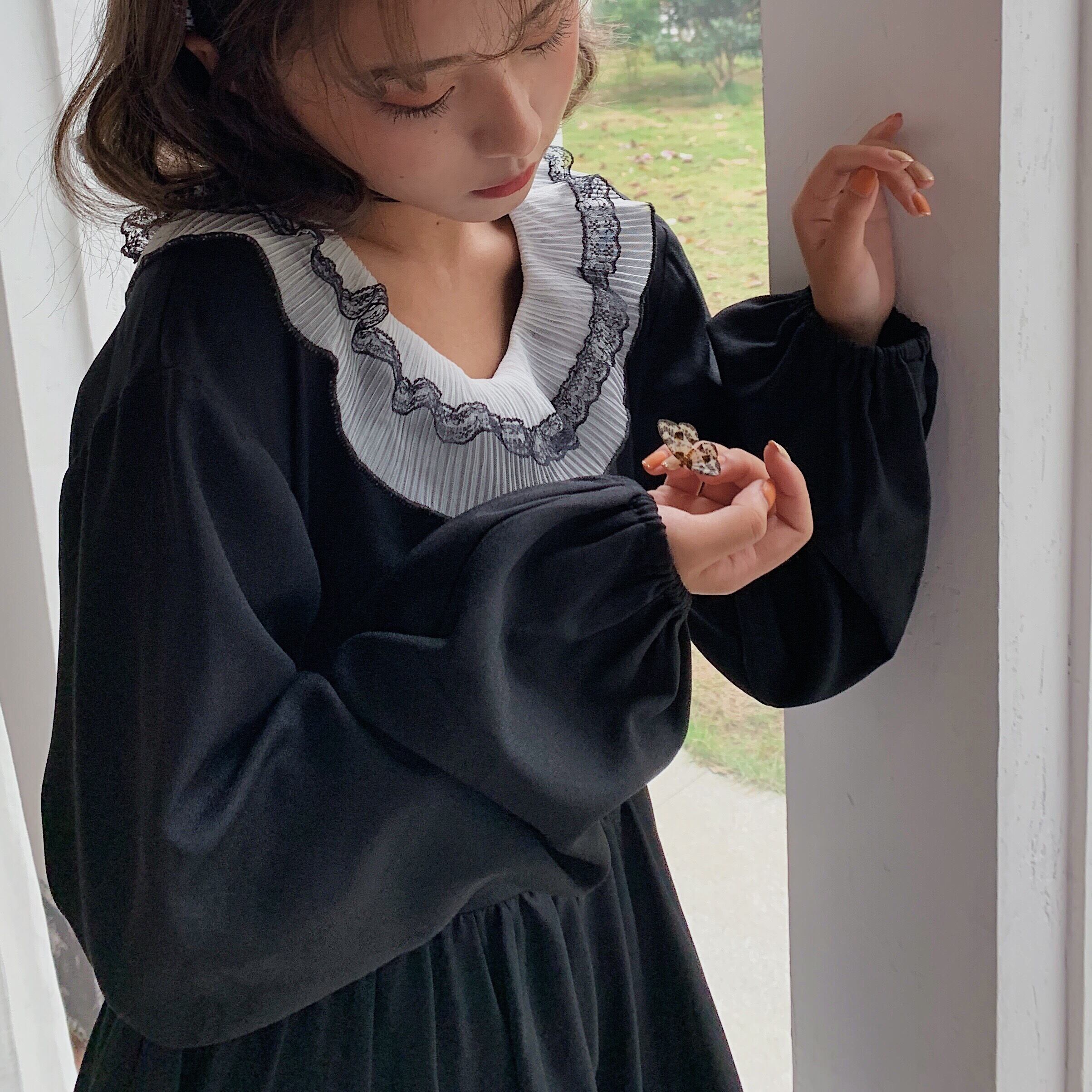 フリルをあしらった襟が可愛い◎長袖ワンピース♪