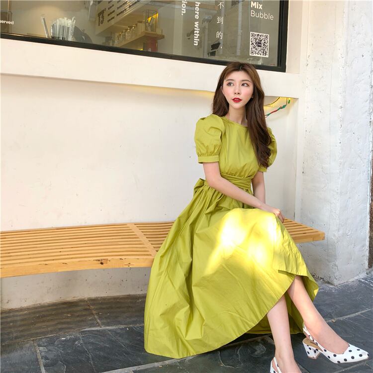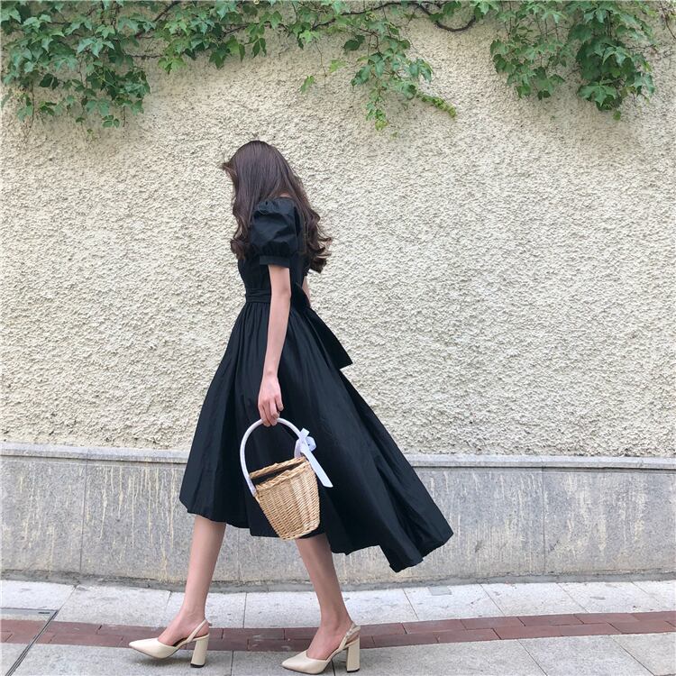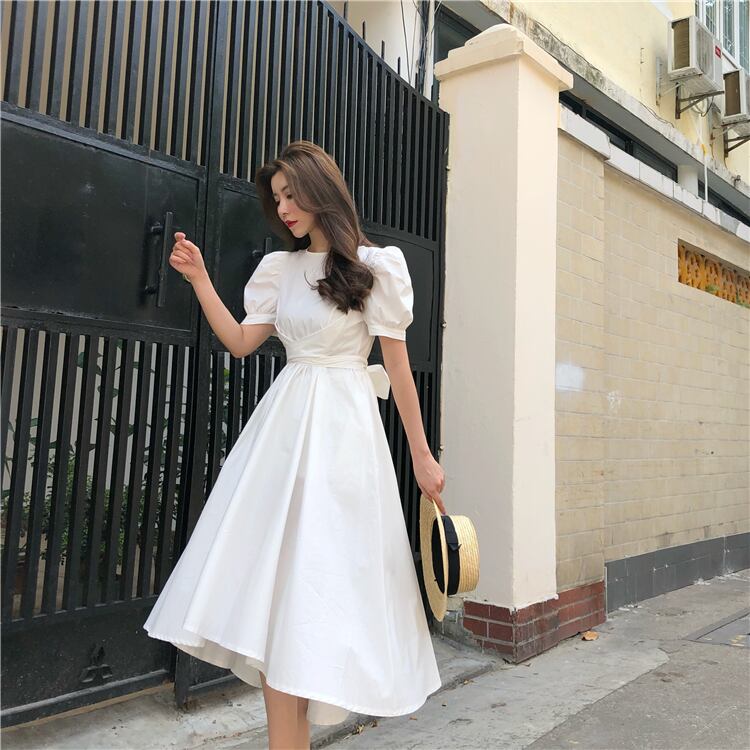 パフスリーブバックリボンワンピース ワンピース フレアワンピース 膝丈 ひざ丈 袖あり 半袖 パフスリーブ ラウンドネック フレア リボン かわいい 大人可愛い きれいめ シンプル カジュアル 大人 おしゃれ お洒落 大人可愛い 大人女子 こなれ感 ラブリー キュート ガーリー 無地 春 夏 10代 20代 30代 レディース 学生 通学 デート お出かけ 女子会 休日 着回し 普段使い 韓国 韓国系 色展開 白 ホワイト 黒 ブラック 5975