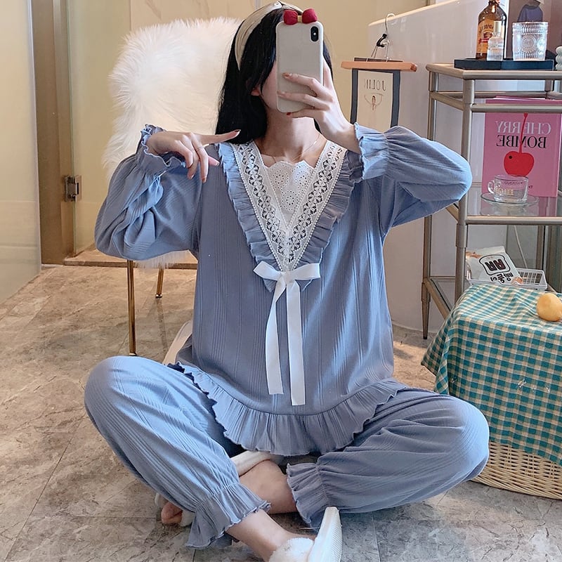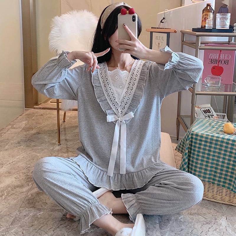 #長袖 #かわいい #シンプル #フリルレースパジャマ #ルームウェア